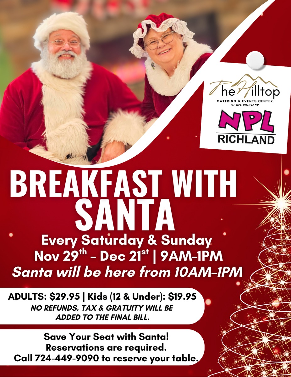 Reservations are required and payment will be collected at the time of booking. Tickets are non-refundable. To reserve your seat, please call 724-449-9090.