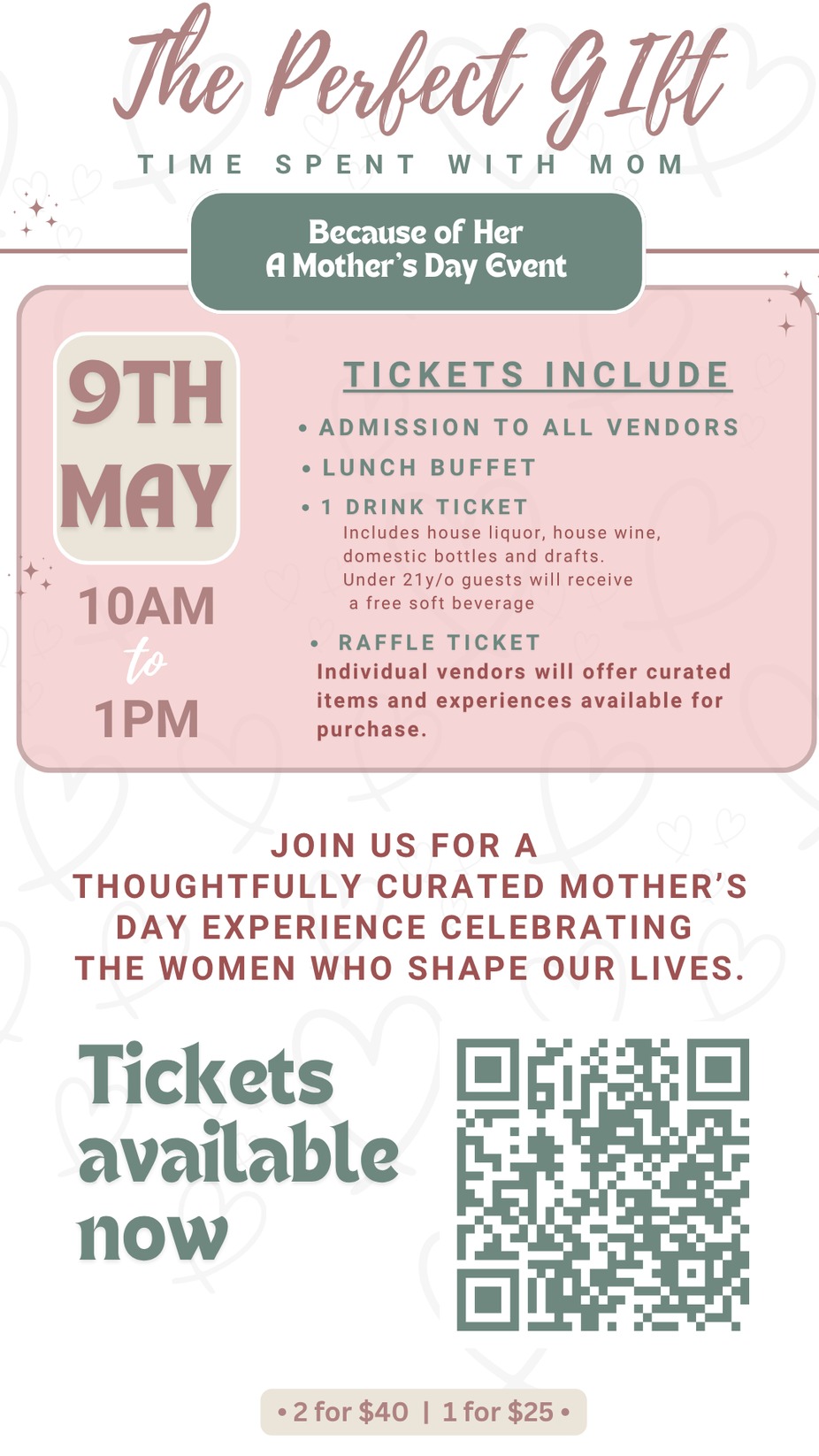 Whether you’re planning a special outing with your mom, spending time with friends, or treating yourself, this event offers the perfect early Mother’s Day experience in an elevated, welcoming setting.
