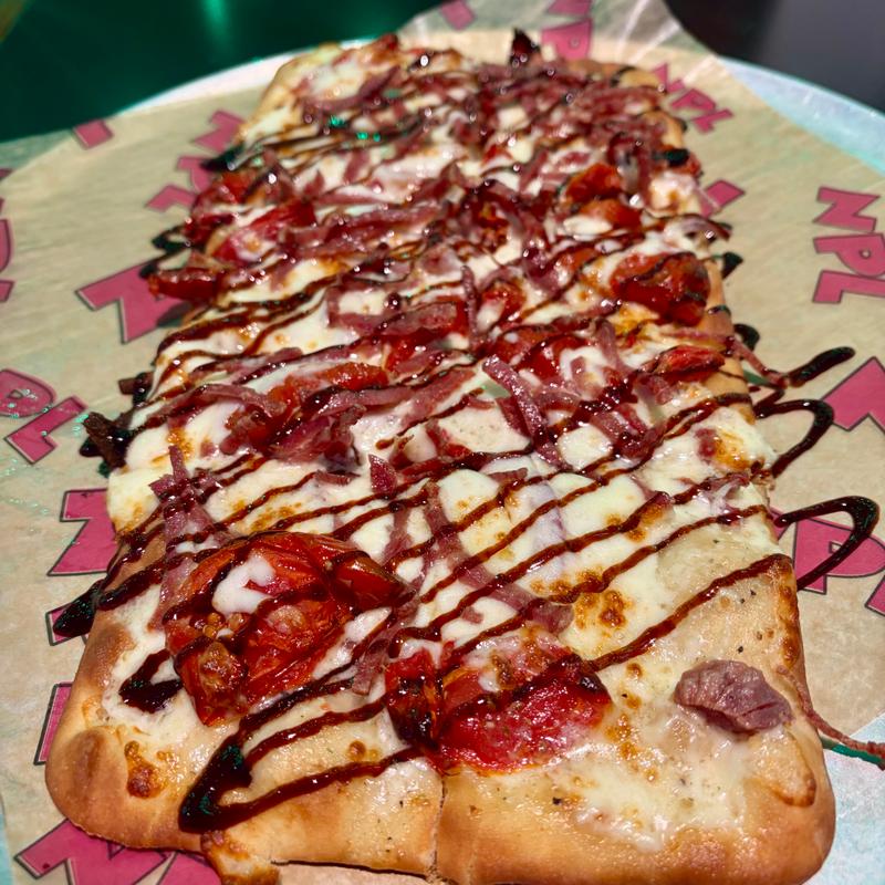 Garlic-infused olive oil, diced chicken, hot sauce, diced celery and Mozzarella cheese. Topped with a ranch drizzle.